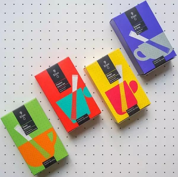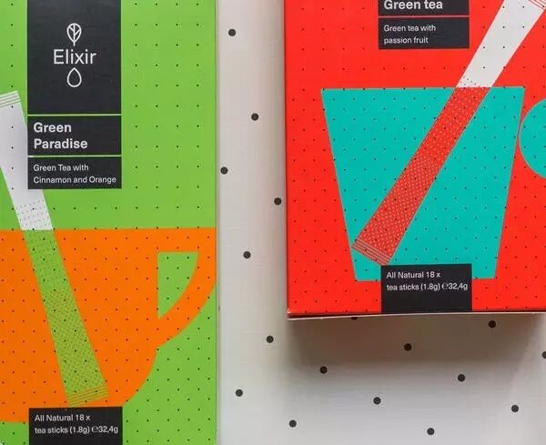 Typical Organization 设计工作室为希腊茶叶品牌 Elixir tea 的茶棒做了包装设计。与茶包不同,茶棒能通过表面的小孔,帮助茶叶增加与水的接触。Typical Organization在包装盒上就将产品的特性体现出来。不仅有茶棒放入茶杯中的形象,还将小圆点规则分布在包装上,用以暗指茶棒上的孔洞。除此以外,色彩的搭配也是其亮点。