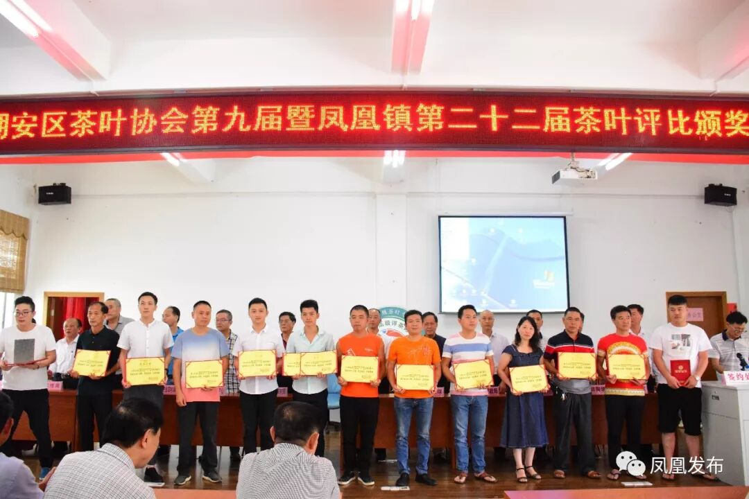 6月4日,本届茶叶评比大会颁奖典礼在凤凰镇茶艺楼举行,区委常委、凤凰镇委书记黄志刚,市农业农村局、市茶科中心、区农业农村局、区民政局等有关领导,茶界专家教授,区、镇茶叶协会评比专家为获奖者颁奖。此次茶叶评比会共评出蜜香型单丛茶特等奖3个、一等奖14个、二等奖20个、三等奖30个,花香型单丛茶特等奖4个、一等奖16个、二等奖24个、三等奖34个,乌龙茶优质奖1个、二等奖1个、三等奖2个。