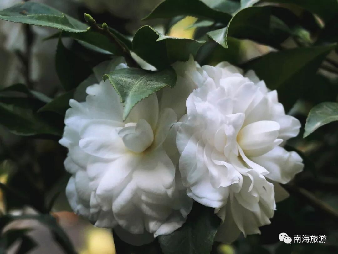 这些姿态万千的山茶花,如今已进入盛花期。它们时而鲜红如火,时而娇羞染粉,时而晶莹洁白……满园茶花放的景象,让游人恍如置身色彩浓烈的油画中,美醉了。最佳花期将持续到春节前后!