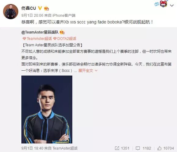 DOTA2Sccc加盟茶队,老东家CEO发文祝贺,玩家看后表示阴阳怪气