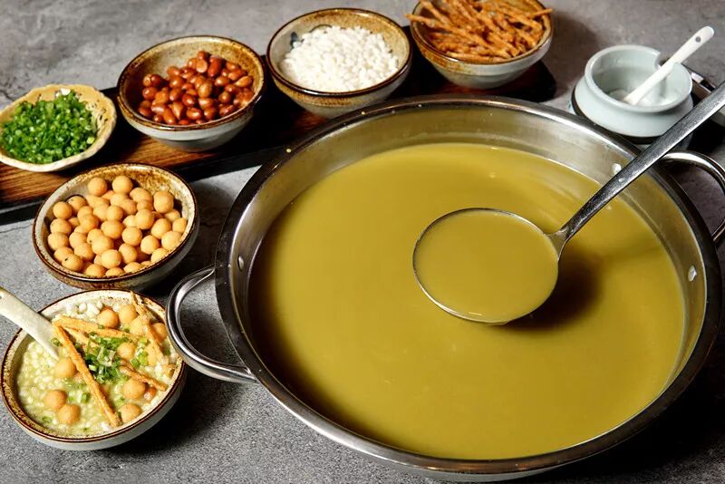 擂茶可泡米饭吃,也可加入炒好的豌豆、花生、玉米之类的佐料,看上去更像一碗五谷杂粮粥。在一些重要的节日,用擂茶来招待贵客,是很多地方客家人的传统。