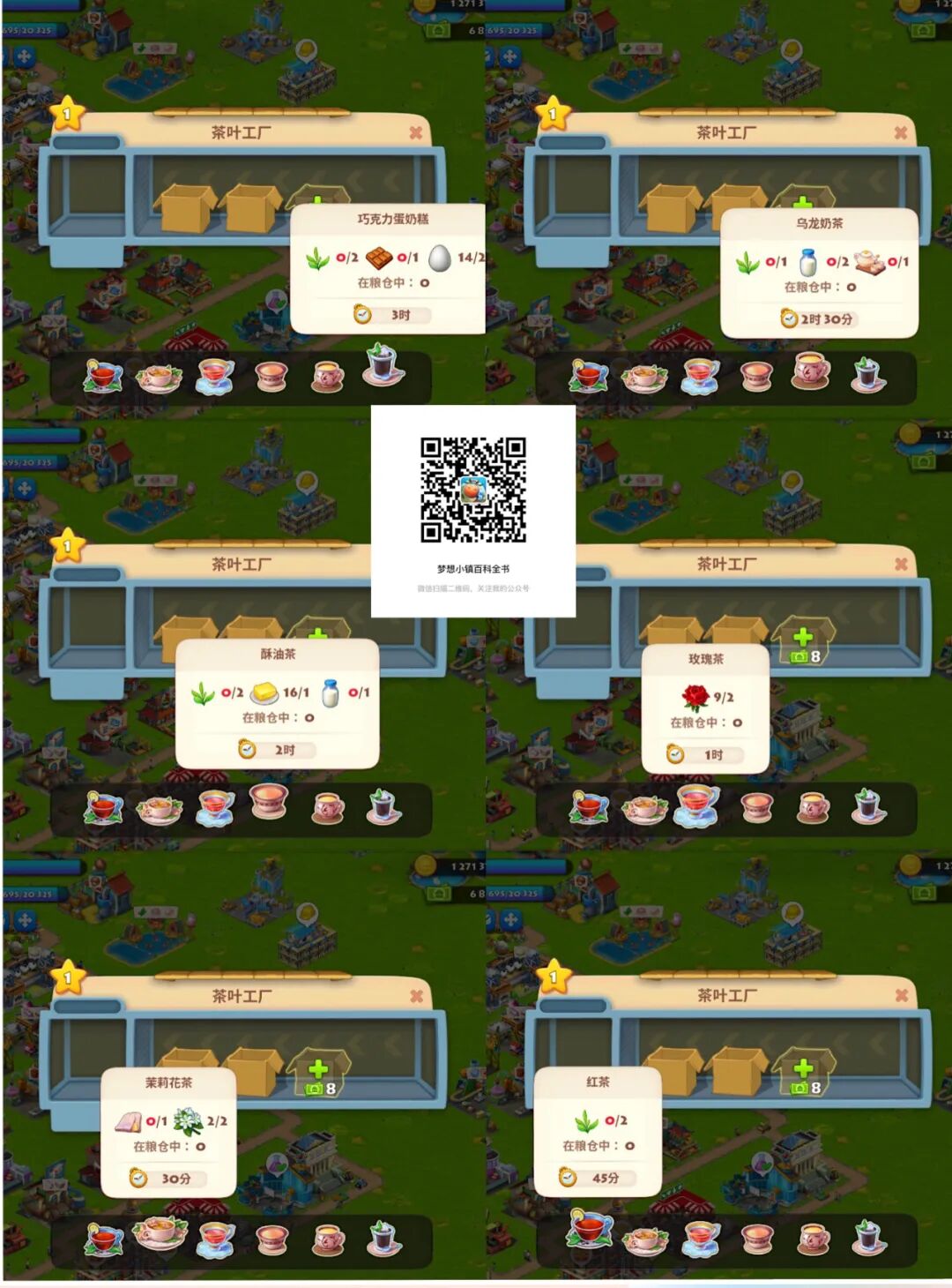 除了茶叶工厂更新六个全新的产品,其它工厂也有新的产品更新,分别如下:1、糖果厂:绿茶糖:2个茶叶+1个奶油+2个白糖2、花束工厂:3个茶包+1个可可+1个咖啡豆+1个纸3、造纸厂:1个纸+1个茶叶4、厨具工厂:品茶套装:2黏土+1松树+1棉布五、茶叶工厂升级数据 茶叶工厂升级所需的金锭可以看这篇文章:全新茶叶工厂升级数据抢先看|提前准备起来六、更新了活动