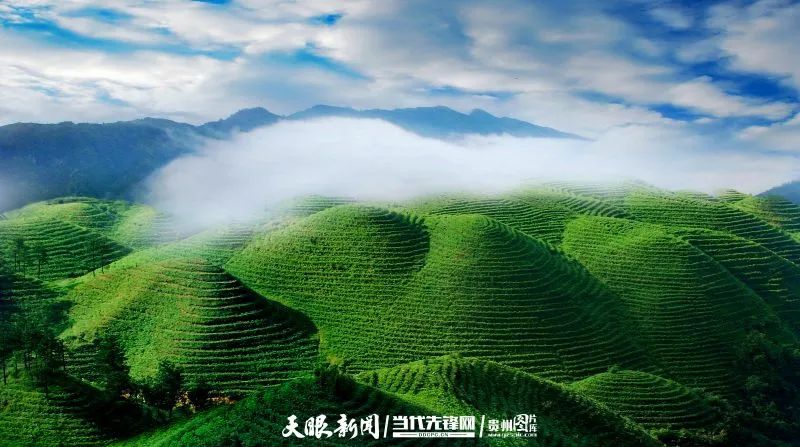 丹寨县排调镇,云雾中的牛角山茶海。韦朝阳 摄(贵州图片库发)