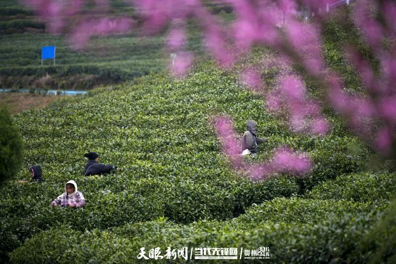 茶农在松桃族自治县普觉镇大同茶园采茶。龙元彬 摄(贵州图片库发)