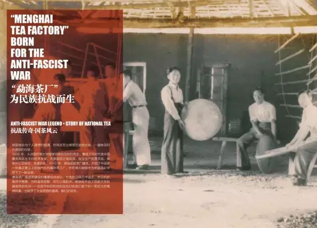 1939年,从法国巴黎大学留学归来的范和钧先生,集结了当时代表中国最高制茶水平的技术专家,齐聚南荒之地勐海,旨在生产优质茶品,以茶换汇,支援抗战。1940年,佛海实验茶厂建成,开启了中国第一所真正意义上的现代化机械制茶工厂,并在烽火硝烟中为中国茶业保存下了一脉生息,也为大益这一抗战品牌赋予了亮丽的基调,殷红的底色。