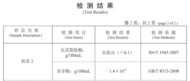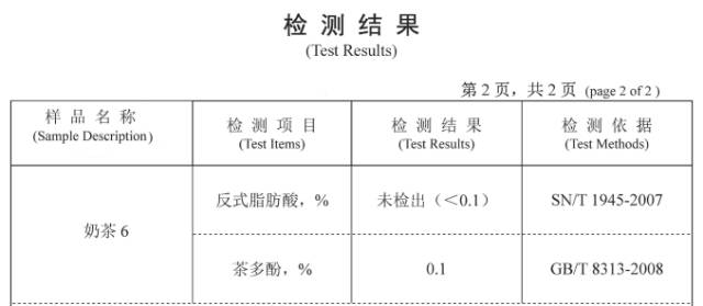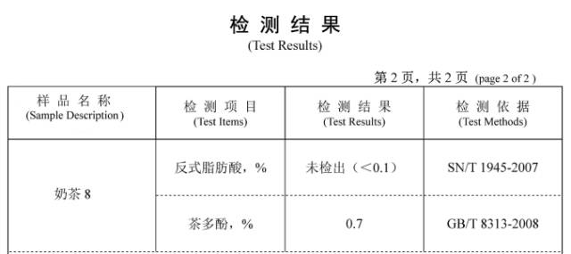 三方数据显示街边该奶茶的数据明显低于国标好么!根据国家标准奶茶属于奶茶饮料每升至少需含茶多酚200mg但是街边某奶茶呢竟然只有140mg/L远低于国家最低标准!