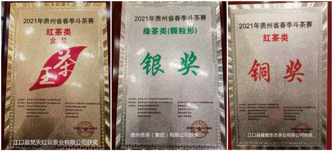 4月30日,2021年贵州省春季斗茶大赛落下帷幕,江口县梵天红云茶业有限公司夺得红茶“茶王”桂冠,贵州贵茶(集团)有限公司获得绿茶类(颗粒形绿茶)银奖,江口鑫繁生态茶业有限公司获得铜奖。