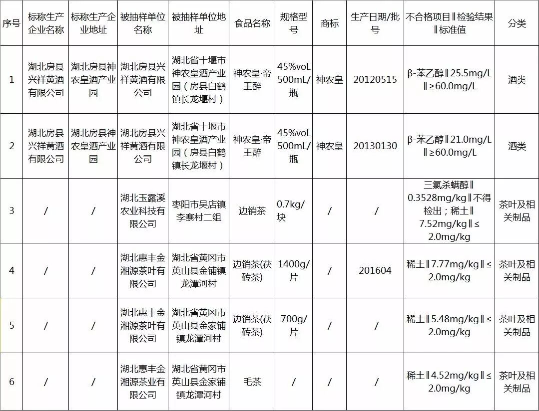 其中酒类不合格2批次,茶叶及相关制品不合格4批次。不合格的茶叶,主要是稀土含量超标。