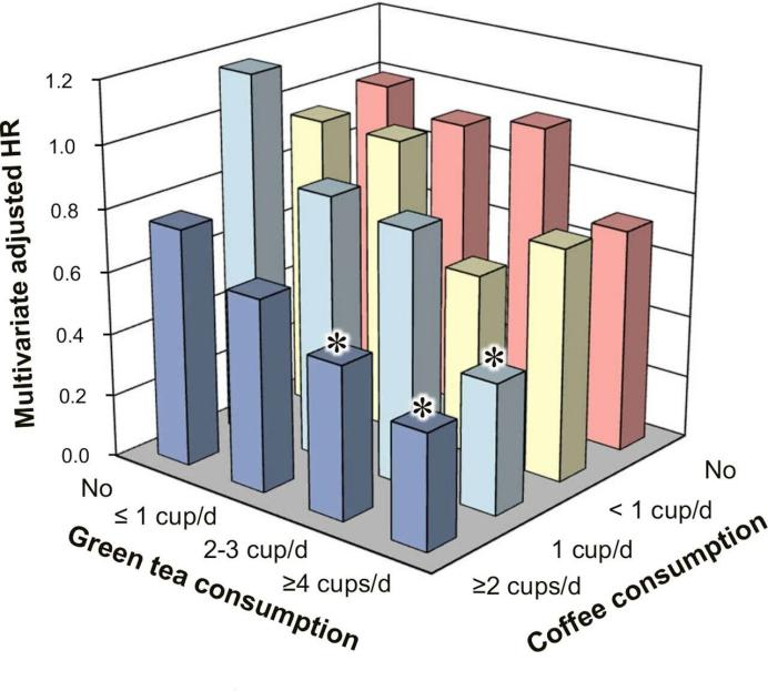 5. 防治糖尿病咖啡碱具有防治糖尿病性膀胱病的作用。美国哈佛大学的学者发现,长期饮用含咖啡碱的咖啡能显著降低Ⅱ型糖尿病的发病率,而饮用脱咖啡碱的咖啡则无作用。日本一项研究表明,每天喝绿茶和咖啡也许能够帮助糖尿病患者延长寿命,改善生活,每天喝4杯或更多绿茶、每天喝2杯或更多咖啡的参与者,死亡几率甚至降低了63%。