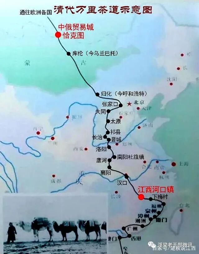 ▲ 万里茶道第一镇《江西通志》记载:“上饶、广丰、玉山、铅山四县,位于本省赣东,与闽浙山地毗连,诚属天然之优良产茶区域,更有信江流贯其间,河道纵横,茶叶运输,早年多赖水道。上饶、广丰、玉山三县茶叶,大都集中河口制成红茶,故称河红,早已蜚声国际市场。”