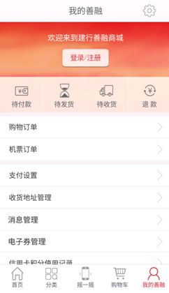 第二步:进入商城右下角——我的善融进行登录(网站会员、个人网银、手机银行、建行账号)用户可以直接登录新用户请点击注册,把相关信息填写完整,即可注册成功