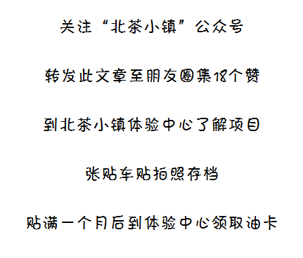 凡自愿驾车到北茶小镇营销中心领取车贴海报,并张贴于后挡风玻璃的市民