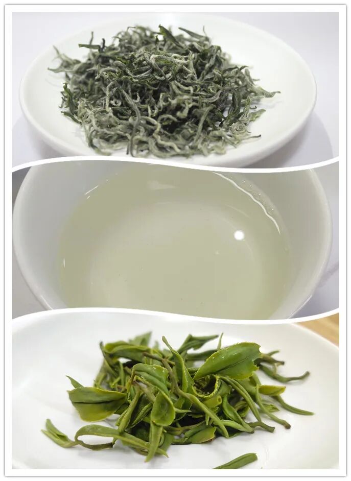 外形细嫩卷曲,披毫隐绿;汤色嫩绿明亮;香气清花香显;滋味清爽,鲜醇;叶底嫩绿明亮,显芽,鲜活。