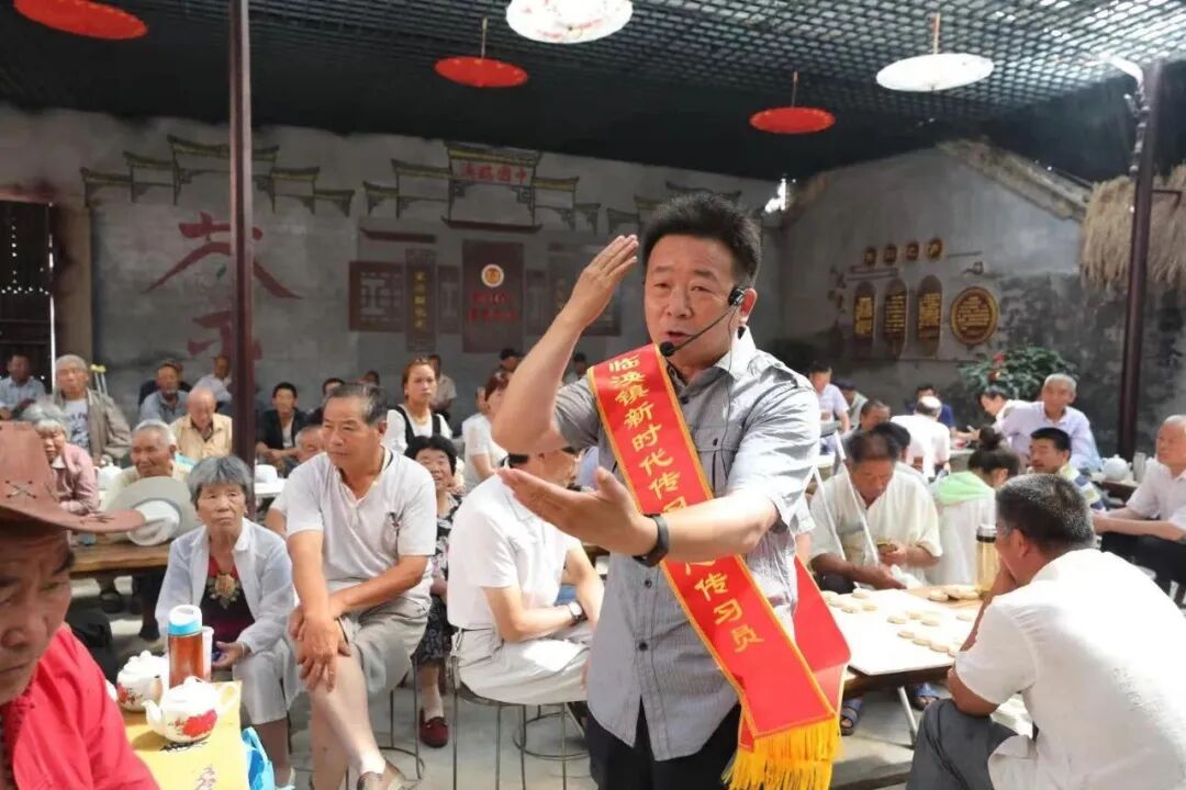 濉溪县临涣镇是淮海战役的重要战场,一名支前民工在给前线运物资的途中鞋子破了,他赤脚推着独轮车,将物资顺利送到了前线,自己的脚却被冻掉了四个趾头……讲者动情,听者动心。台上的王士宏热泪盈眶,台下的观众也随着他深情的讲述,或红了眼眶,或低头沉思。台上台下泪光莹莹处,都是对那段岁月的崇高敬意。“矛盾纠纷,找老王说理去”