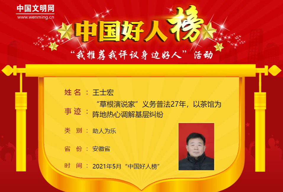 不写状子、不交费用、不限案由,只要临涣镇的群众有需要,都可以去茶馆找王士宏帮忙。有人跟他开玩笑:“你每天比谁都忙,你挣的钱在哪里?”他总会笑着说:“我看到更多的是笑脸,不是金钱。”