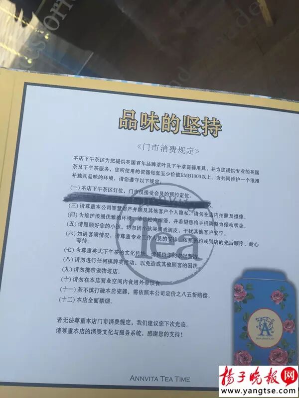 “当时真的是为老人考虑,不想弄得不开心。事后回到家后,有点想不通。”魏女士5月4日再次来到这家茶屋。她认为,店家完全有这个责任和义务明确告知消费者,提醒茶具的价格以及损坏的赔偿规定,这样消费者也会更加当心注意。“点茶水的时候,并没有提醒我们。”