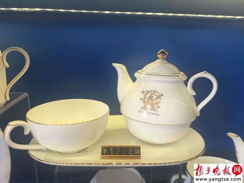 10多分钟后,走进屋内的收银台,一听到赔偿的金额时,魏女士可吃了一惊。服务员介绍,打碎的这个杯子是按套出售的,包括一个水壶和配有碟盘的杯子,三件一组售价为1298元。魏女士发现茶屋内的一个柜台上也确实摆放了一样的杯组,标价为1298元/套。