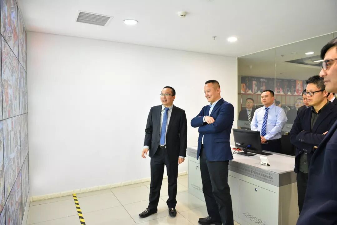 在酒仙网董事长郝鸿峰带领下,邹涛一行参观考察了酒仙网总部,并走进酒仙网国际名酒城。