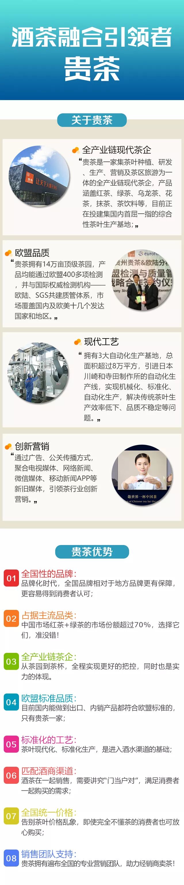 创新虽易,但革新很难!作为“酒茶融合”开创者,贵茶依然在这一领域不断革新,探索更高效、更完善的融合方法,推动酒茶行业在渠道合作共赢的快车道上高速发展,继续引领未来“酒茶融合”的新方向。