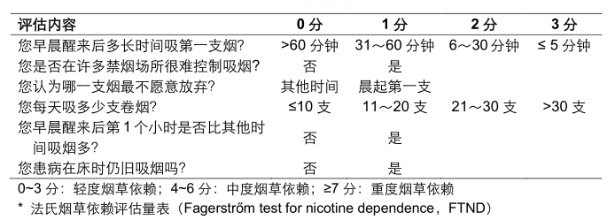 第一步,评估烟草依赖的症状。如果您是烟民,请注意自身是否有下面的表现:早晨醒来立即需要吸烟;在禁烟场所难以控制吸烟的冲动,例如高铁停站时必须下车吸烟,或者开会时要溜到卫生间吸烟;当停止吸烟或减少吸烟量后,出现戒断症状,包括吸烟渴求、焦虑、坐立不安、情绪低落、头痛、唾液分泌增加、食欲增加、注意力不集中、睡眠障碍等;出现烟草耐受表现,即需要增加吸烟量才能获得过去吸较少量烟即可获得的吸烟感受,最直观的表现就是每日吸烟量的增加;因吸烟逐渐忽视其他的活动或兴趣,不能从其他活动及喜好中获得与吸烟类似的满足感;在罹患吸烟相关疾病后仍不能戒烟。您可以使用下面的表格,进一步评估您的烟草依赖程度。