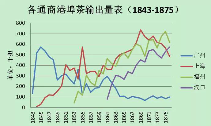 1881年,上海、福州的出口茶叶更是分别达到了62.3万担、66.3万担。