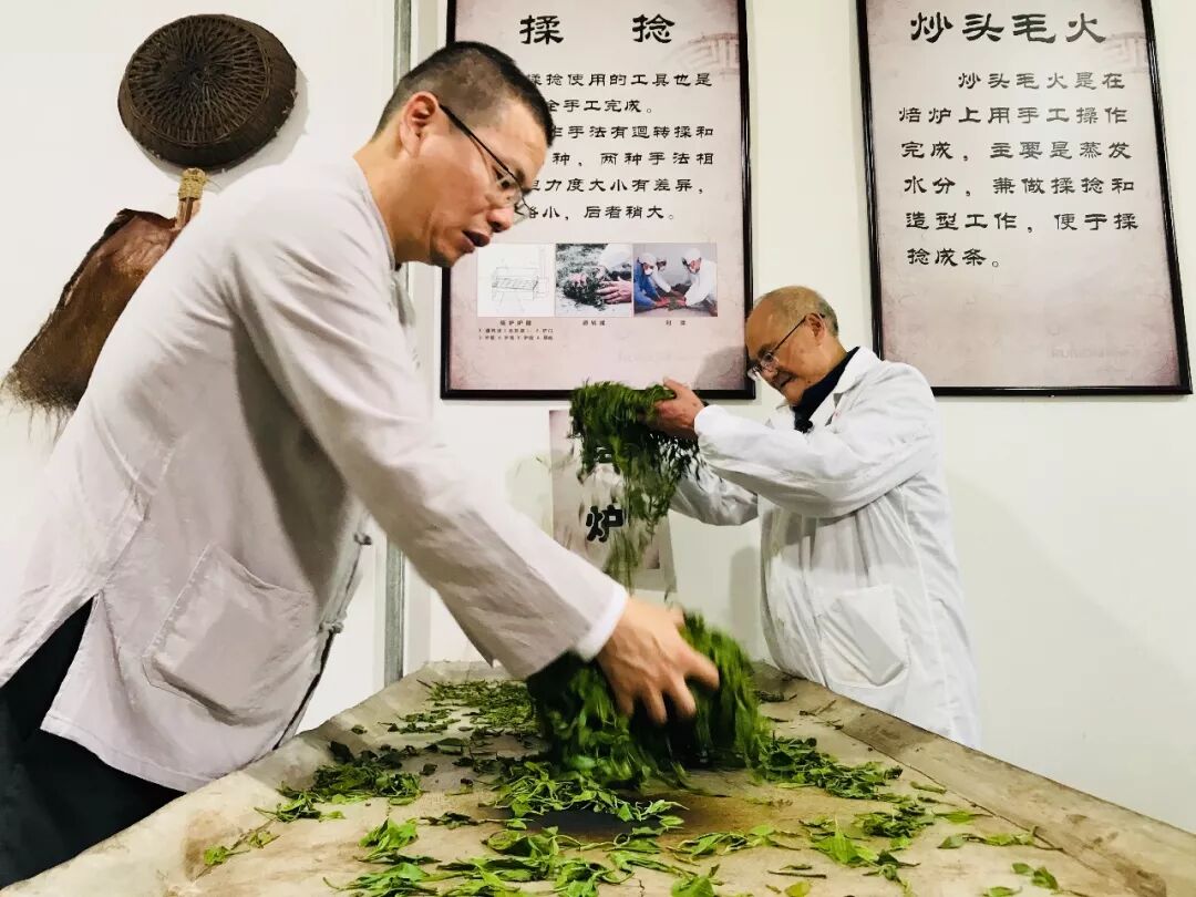 其加工工艺为蒸青、扇干水气、铲头毛火、揉捻、铲二毛火、整形上光(手法为搂、搓、端、扎)、拣选七大步骤。