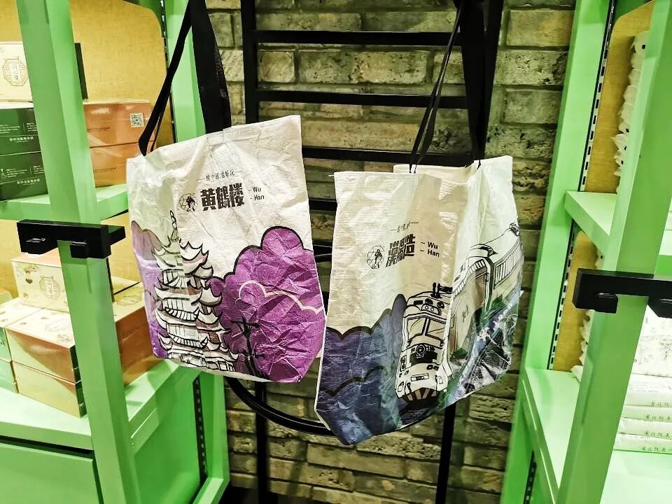 武汉首店,怎么能没有武汉元素。为武汉量身定制的4款环保袋,有“江汉关”,“黄鹤楼”,“汉阳造”,个性涂鸦真的太武汉了,12月1日开业就能买。