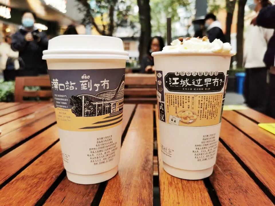 除了以上这些,茶颜还为武汉量身定制了6款纸杯。在纸杯上,能发现龟山电视塔、长江大桥、江汉关等诸多武汉地标,还有“江边头 多泳士”,“江城过早冇”等诸多金句,一开口就是老江湖了。这么了解,基于多次的探索。茶颜的团队都很年轻,平均95+,来武汉也会特地去打卡城中热门的美食馆子。