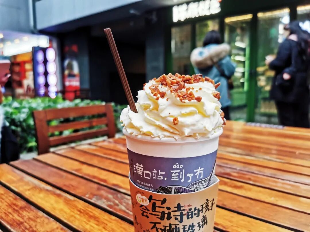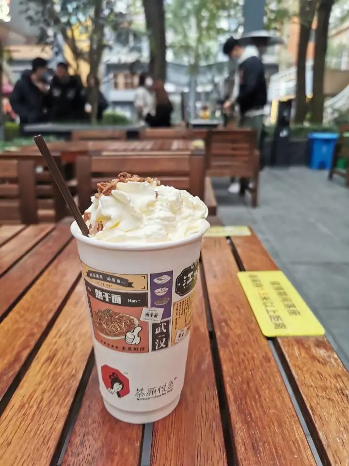 幽兰拿铁和声声乌龙是茶颜的两大王牌,不点,真的就觉得排队有点亏。有些茶颜的死忠粉,只喝幽兰拿铁,幽兰独美。熟悉的茶香味,清爽的奶油,好吃的碧根果,哇~~武汉茶颜粉简直要哭出来,和长沙一模一样的味道!