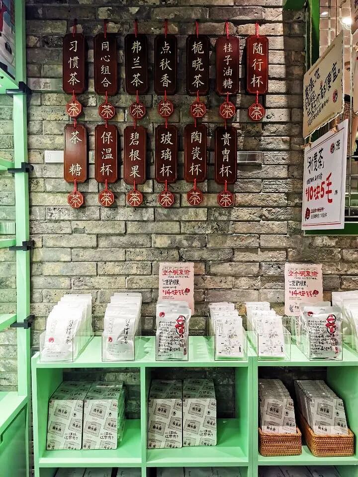 除了点单区,店里还有专门的茶叶铺子,售卖各种有意思的周边。