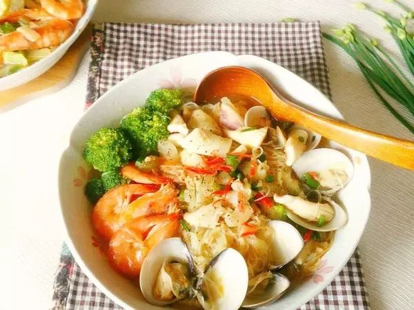 1、小鲜鱿、蟹柳洗净切小块。2、将高汤和米粉倒入碗内,加盖,微波高火3分钟。3、小心将盖子打开,加入切成小块的鲜鱿鱼、蟹柳、豆芽菜、青椒青椒/红椒丝,加盖,微波高火2分钟。4、静置3分钟,开盖,加少许盐调味,洒入即食紫菜丝,即可食用。