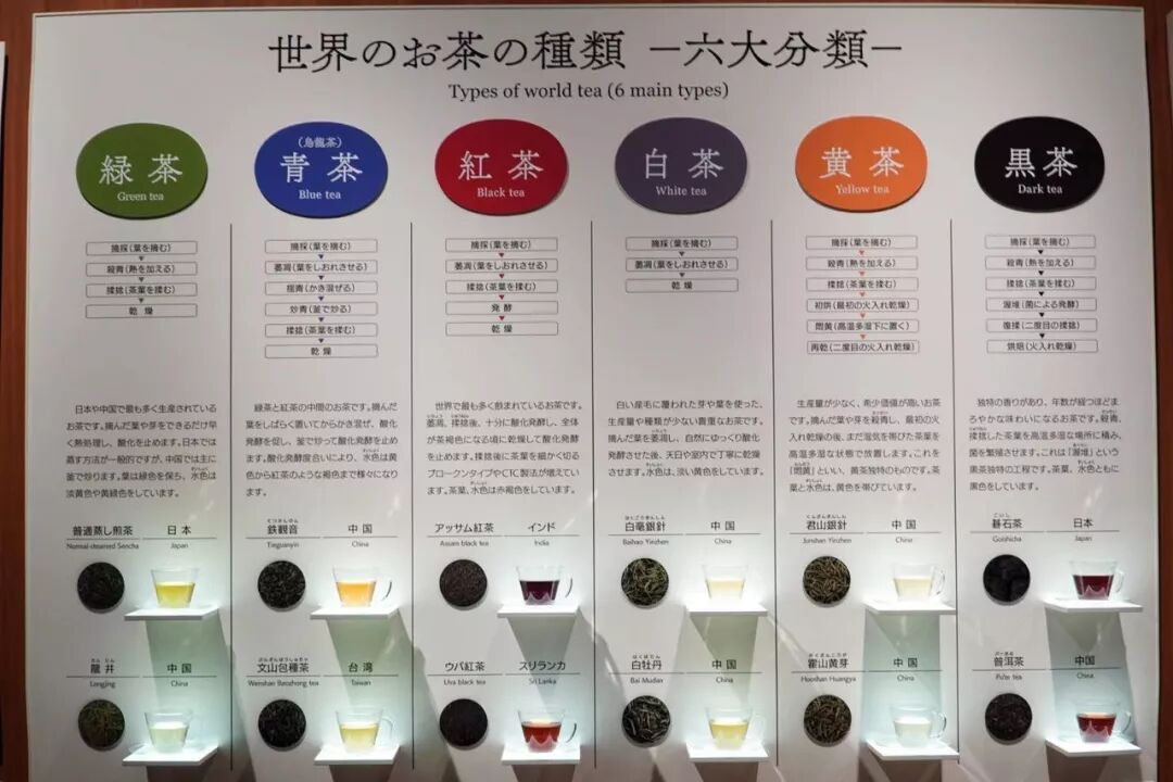 这张世界茶种类,一样也是按六大茶类来分,并且上面所举例的茶基本都标识来自中国。