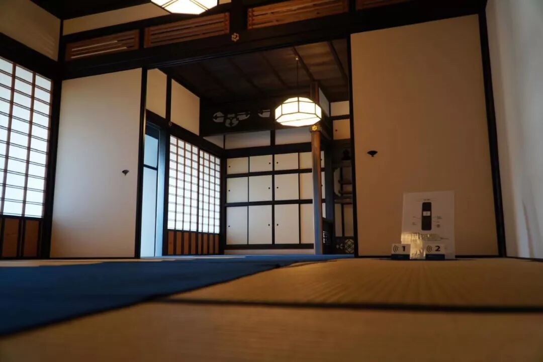 茶室里面还有个最原始的日本小茶室,图中的这个小口钻过去有个刀架,是用来给以前日本武士放刀剑的,要进这个茶室,就必须从这个小口钻进去,这个设计是为了表示在茶室里,不论你是谁,人人平等。