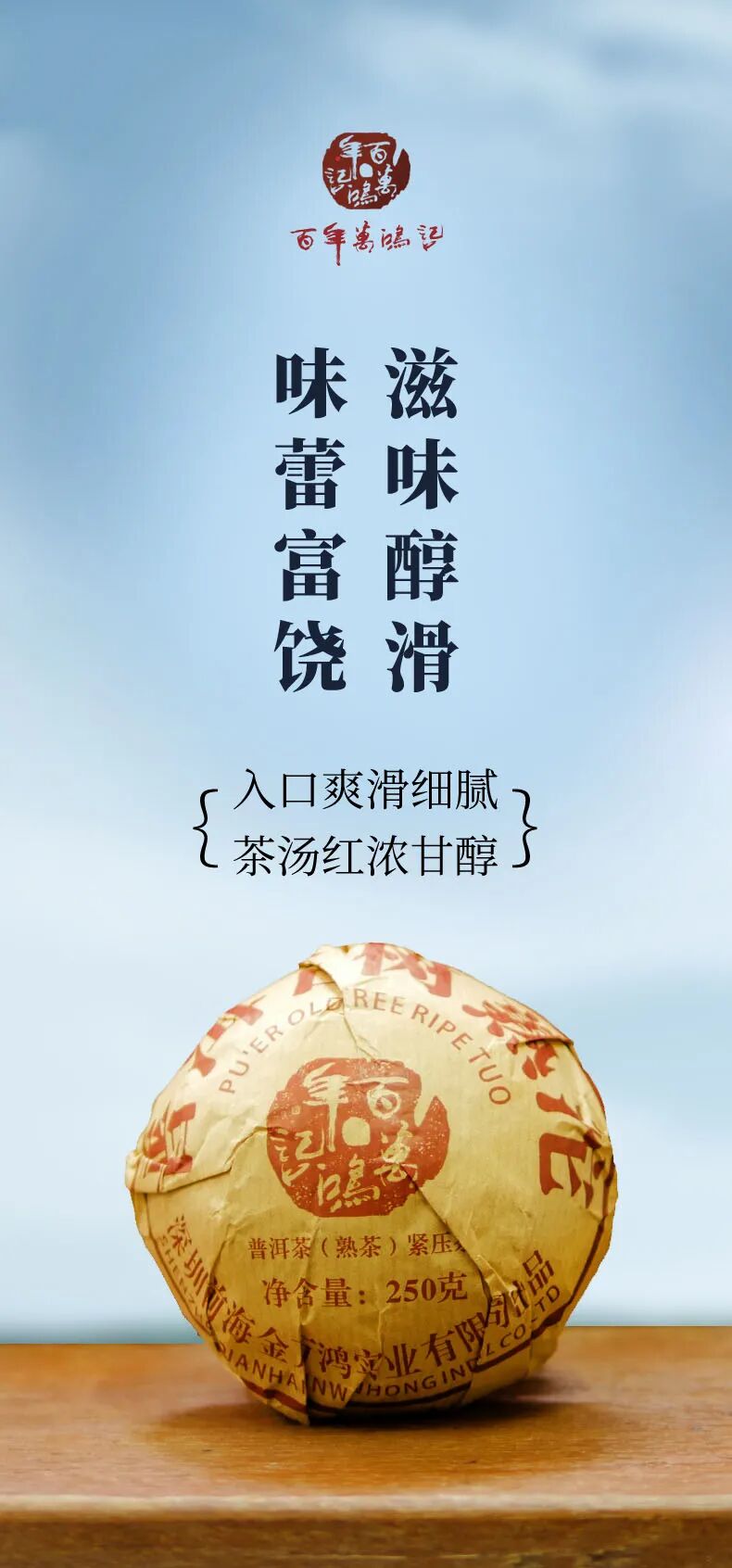 百年万鸿记古树普洱熟沱选用云南景谷古树茶青为原料,经过普洱熟茶发酵技术熟练掌握的大师级发酵师的精心制作,实在是不可多得的好熟茶,适合各个年龄层次的人群饮用。