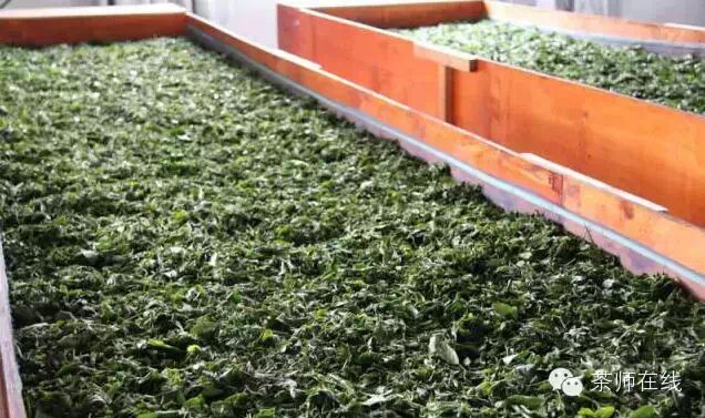 物理变化:水分减少,鲜叶由原来的脆硬变得柔软了,叶色由鲜绿变为暗绿,这个大家一定都见过,拔一把草扔在地上,太阳晒晒就变得软了,和这个过程很像。