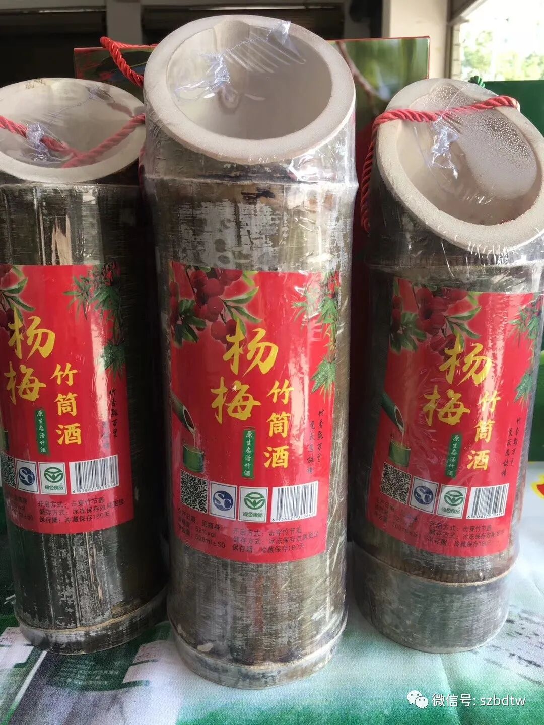 杨梅竹筒酒5箱起批23元一筒,一筒500毫升,一箱12筒, 选用新鲜的野竹笋,运用独创技术,将优质杨梅酒浆注入活竹笋内,自然生长,天然密封,饱吸竹子精华,生长三年至五年不等的时间,酿成人间美酒!这样竹筒酒饱吸天然竹汁、竹叶多糖、竹叶黄酮、竹叶抗氧化物、硒、锌、铁、钙、镁、多种维生素和氨基酸等活性成份。是一款比普通杨梅酒更香、更纯、更环保的原生态健康酒!要下单的老客户可以在昊鑫隆团队客服号上 下单,还没加我们货源号的小伙伴,请添加号: 朋友圈2020年秋冬热销货源每天都更新!