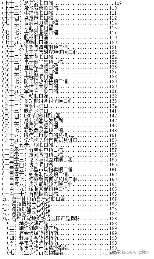 跑江湖销售录音大全,摆地摊夜市火爆产品录音汇总,电子档的销售录音50元一份,有需要叫卖声,录音的小伙伴联系客服号: (备注: 付费购买销售录音),不想付费的老铁勿扰,资料不免费送!叫卖录音是不断增加的!文档有几百个产品的销售录音!