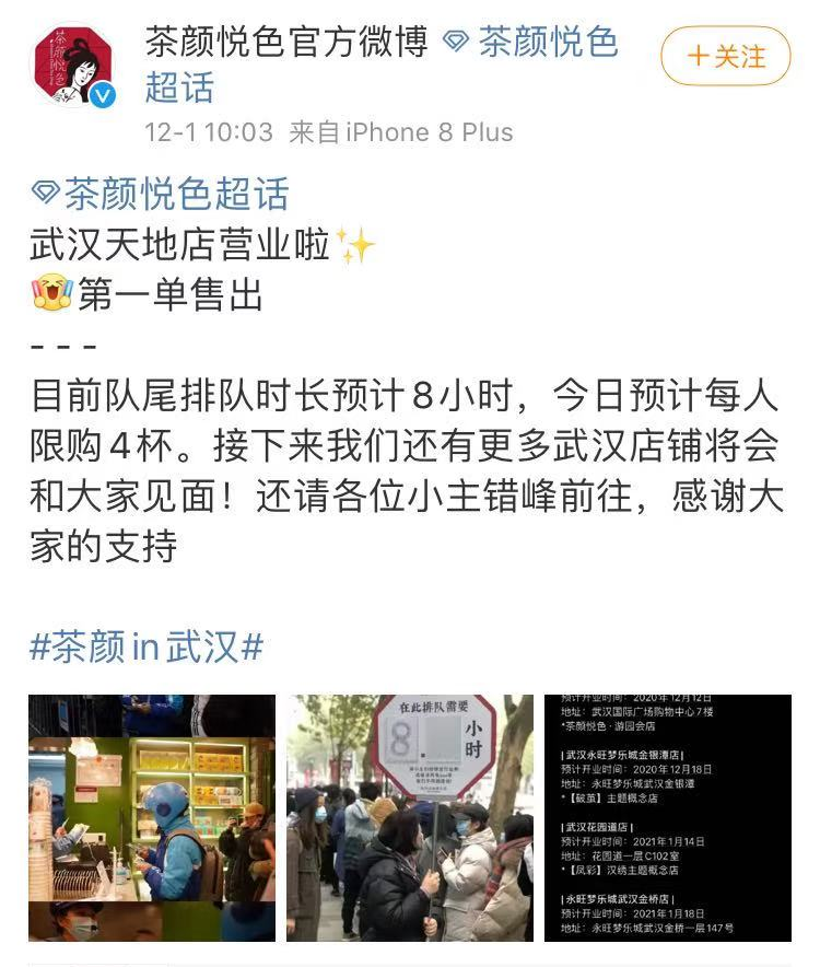 “亲爱的朋友们,茶颜悦色来武汉开出的第一家店以这种方式开篇,还请大家见谅。”12月1日晚上8点,茶颜官微以这样的口吻诚恳地开了头。
