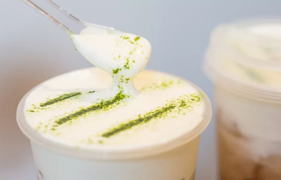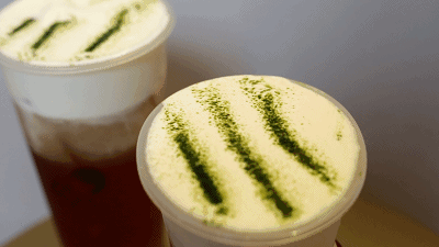 撒上清新的抹茶粉,极其诱人,芝士奶盖快要溢出屏幕啦!
