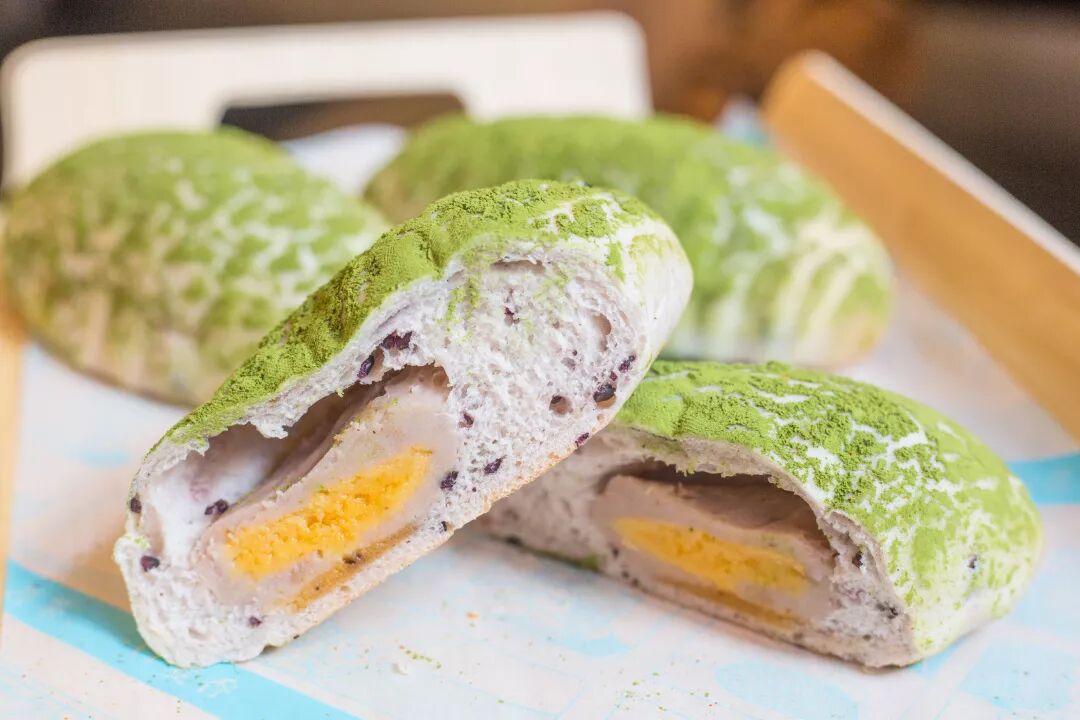就在小编发稿当日,得知这款面包又改良咯,之前上面是绿色的抹茶粉,现在是黄色的南瓜粉。