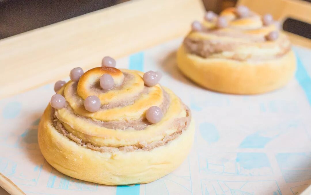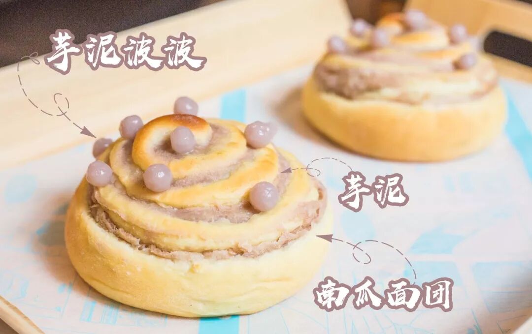 包裹着芋泥和波波的是南瓜面团,由面包师傅现场揉好,卷起。每一口都能咬到香甜粉糯的芋泥,嗯,还有弹牙的波波。