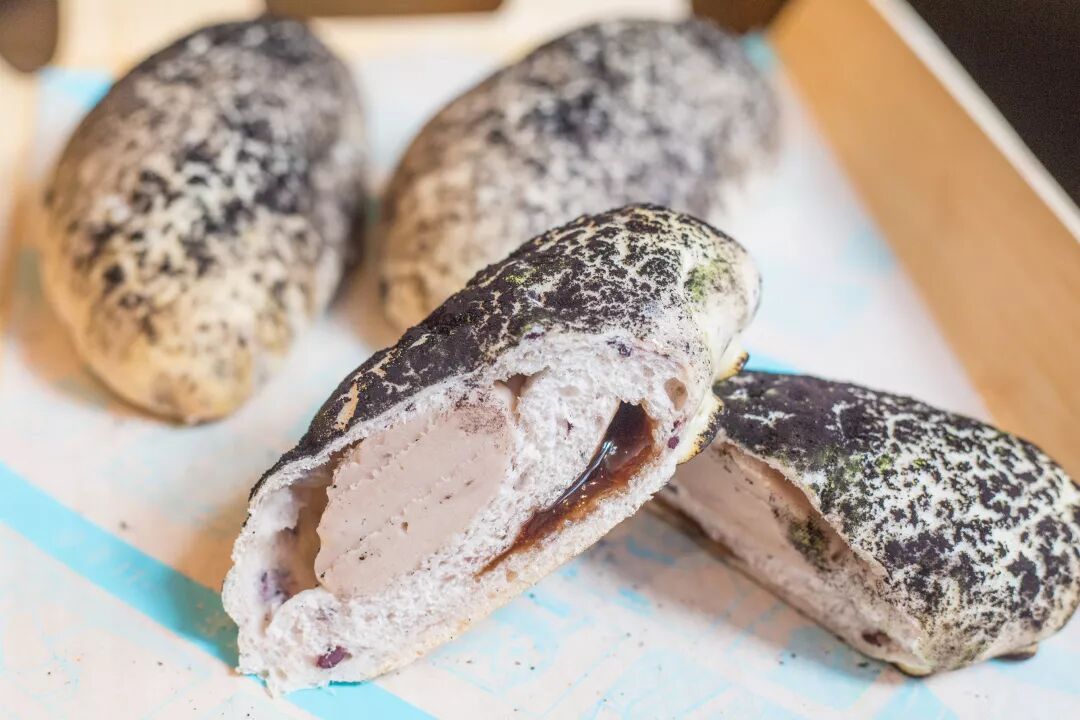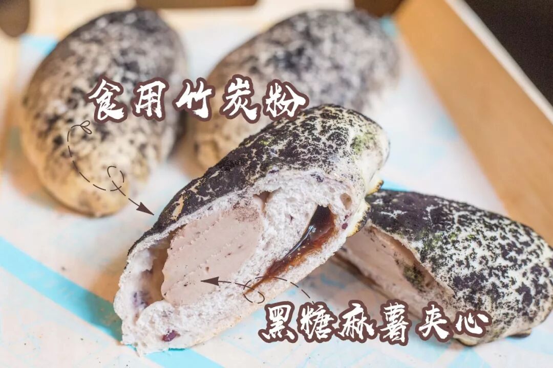 两种薯泥不同的颜色与融化程度,让麻薯包拥有大理石般的夹心。面包口感紧致但不黏牙,好吃到让人想感谢麻薯的发明者。