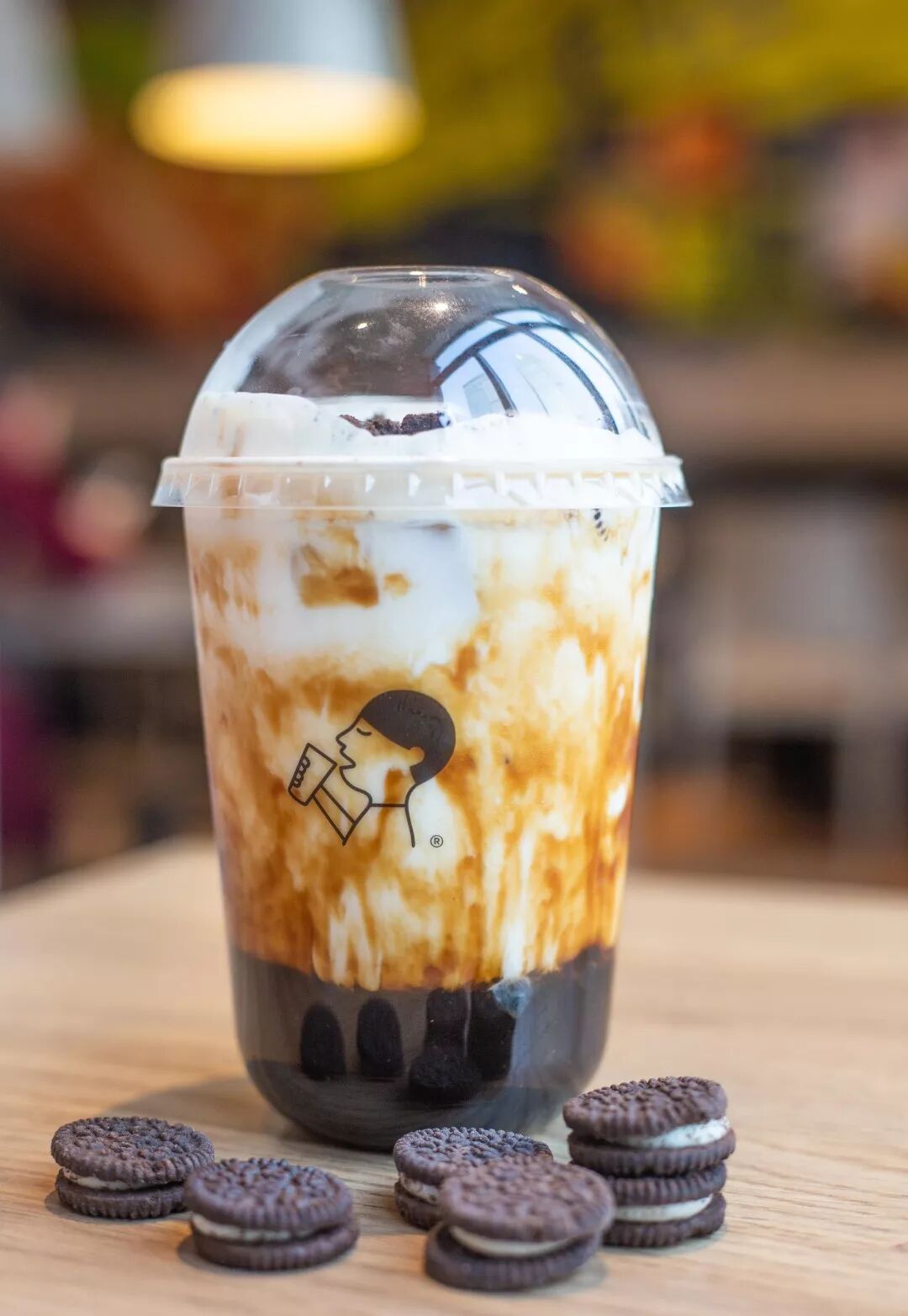 奥利奥波波茶,喜欢奥利奥碎的小伙伴们必须Pick,还可以选择布蕾波波茶或双拼波波茶。
