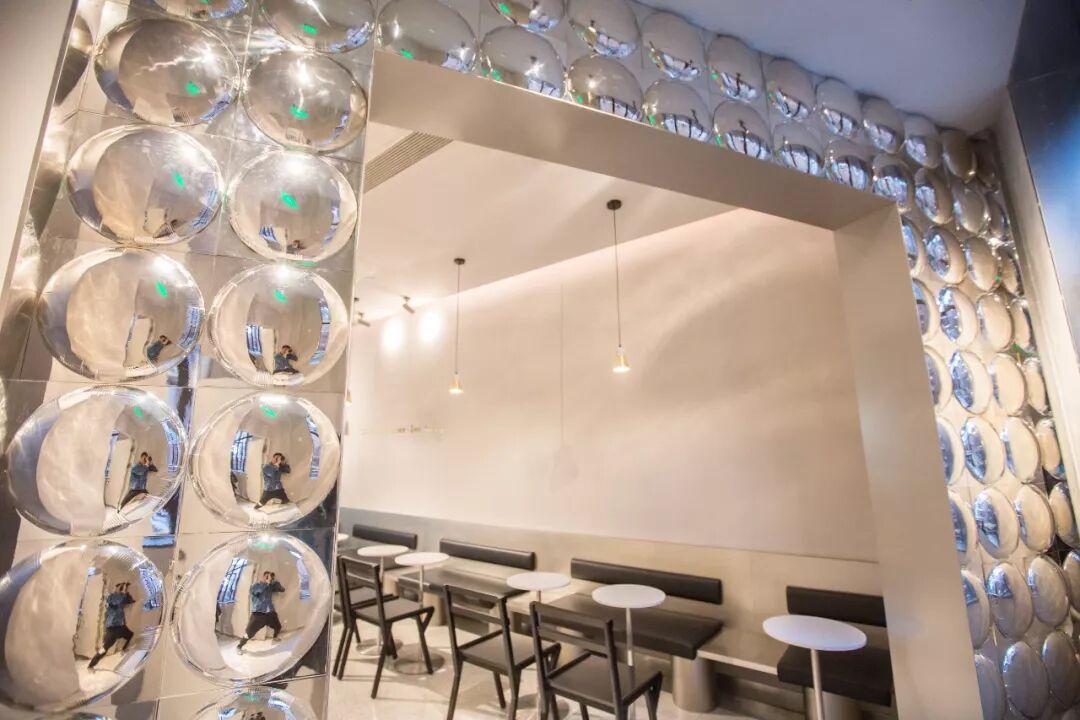汉街这家借用原有建筑结构,不锈钢切割出线条凌厉的拱门与窗框,现代感即刻感知。