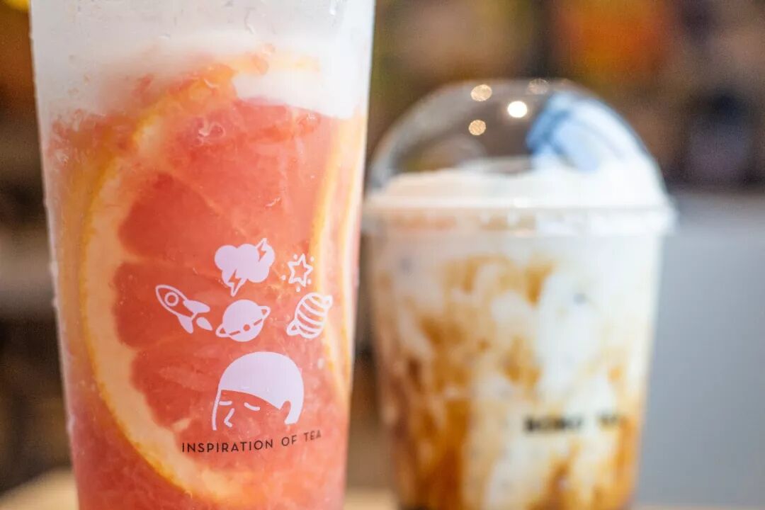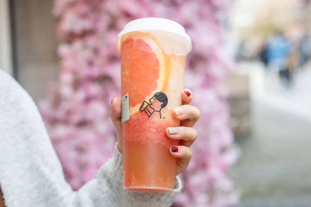 酸酸甜甜的红柚粒,在舌尖迸发,口感更为清爽,茶底是带着茉莉花香。中间的冰沙降低了红柚的苦涩感,反而让茶的滋味在口中大放异彩。