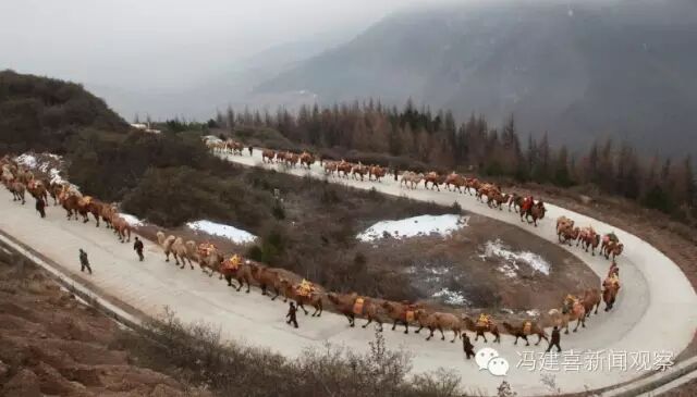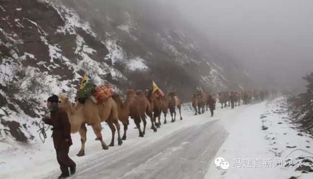 泾阳茯砖茶丝绸之路文化之旅的大型鸵队走进六盘山。