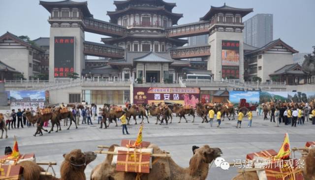 泾阳茯砖茶丝绸之路文化之旅的大型鸵队走进西安大唐西市。