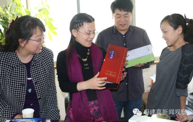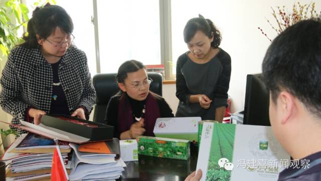 大唐午子集团副总经理段艳正在与同事们研究绿茶包装创新。冯建喜摄