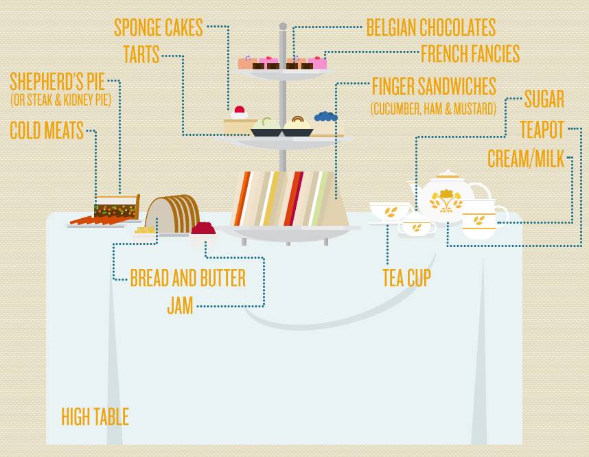 根据《生活文化的英国史》描述英国中上流社会一天的饮食习惯:「中、上流阶层开始有固定喝下午茶的习惯,是来自工业时代人们一日的饮食情况,一般是早上十点左右吃一顿丰盛的早餐,中午 12 点是一份简单的简餐,晚上六点之后则是豪华的晚餐,但是,到了十九世纪,早餐时间提早至八、九点,晚餐时间延至七点半以后,因此至晚餐前长的时间中,先吃一点简单的食物。」故为英国下午茶普遍兴盛的理由。