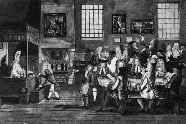 ▲1700年前后,一家典型的伦敦咖啡馆内景